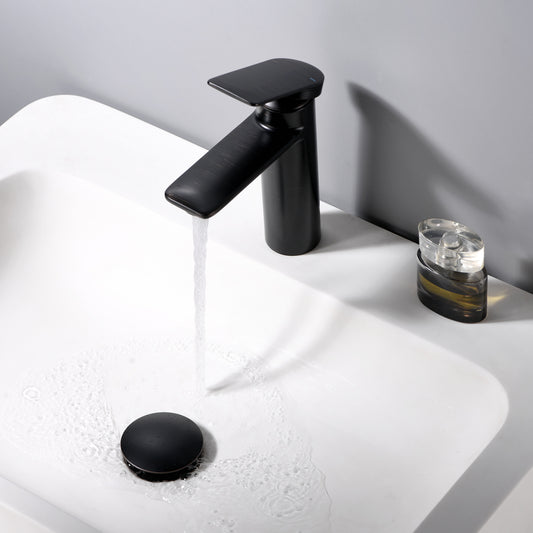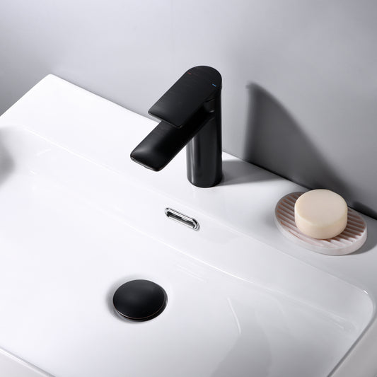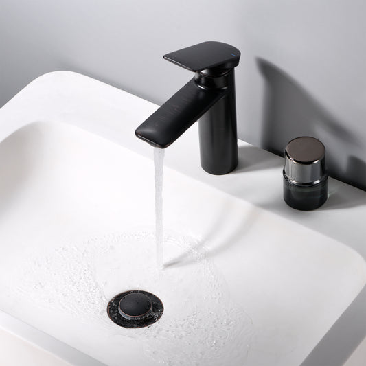 DS03-TM 1-1/2 in. Brass Bathroom and Vessel Sink Push Pop-Up Drain Stopper with No Overflow in Matte Black