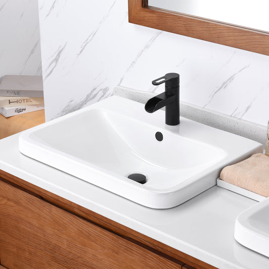 CS-028 Rectangular 24 in. Drop-In Ceramic Bathroom Sink in White