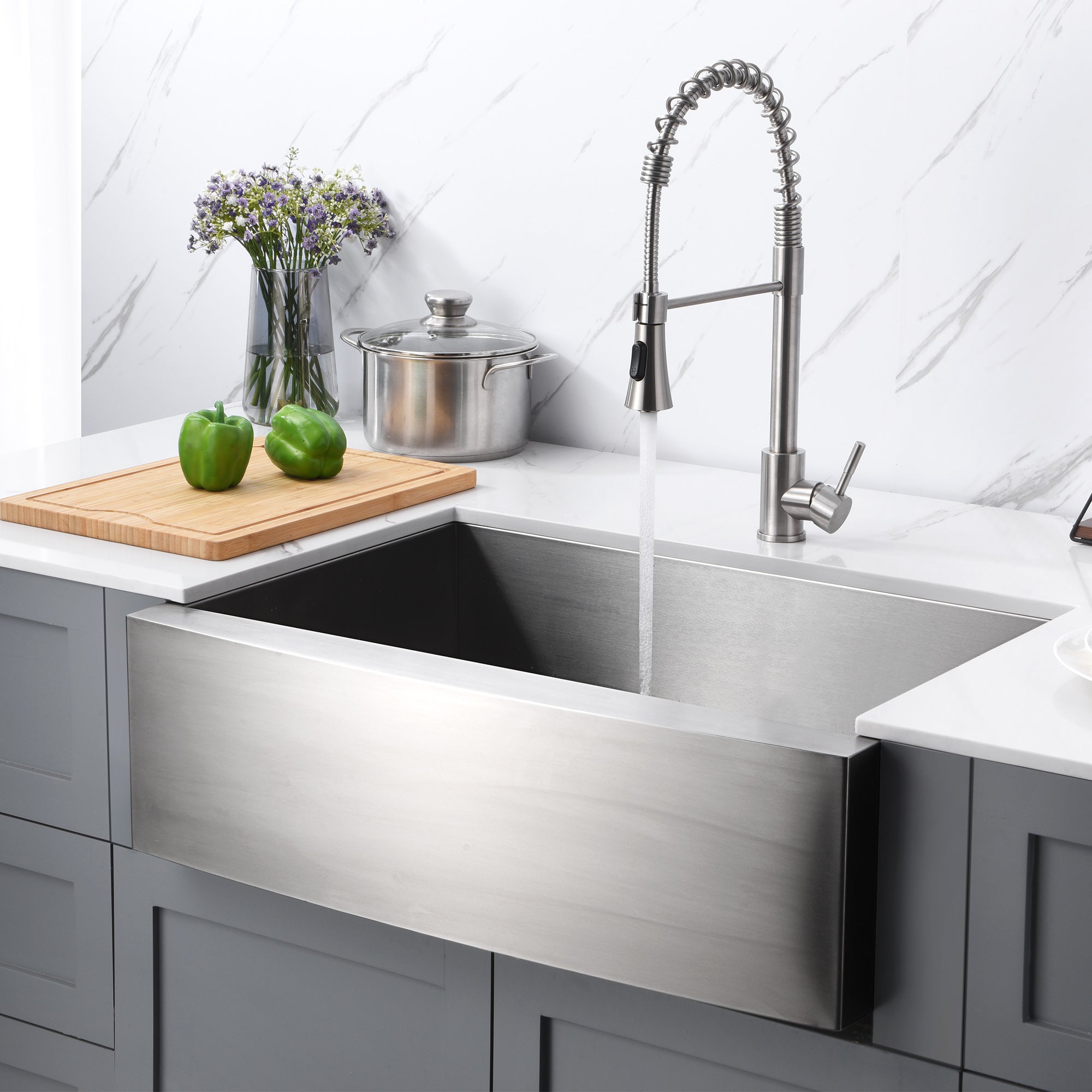 CFS33-18Z Farmhouse Apron-Front 18-Gauge Stainless Steel 33 in. Single Bowl Workstation Kitchen Sink with Accessories