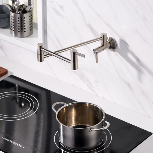 KTS27-TB Contemporary Wall-Mounted Pot Filler with 2 Handles in Brushed Nickel