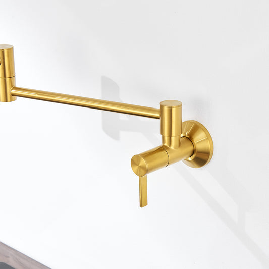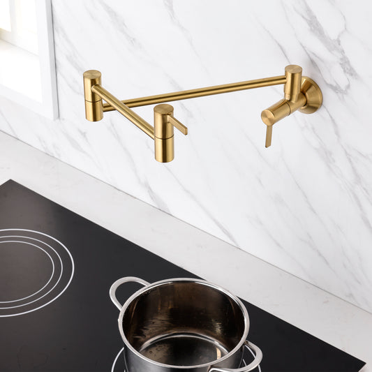 KTS27-TG Contemporary Wall-Mounted Pot Filler with 2 Handles in Brushed Gold