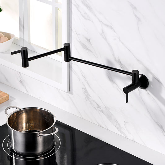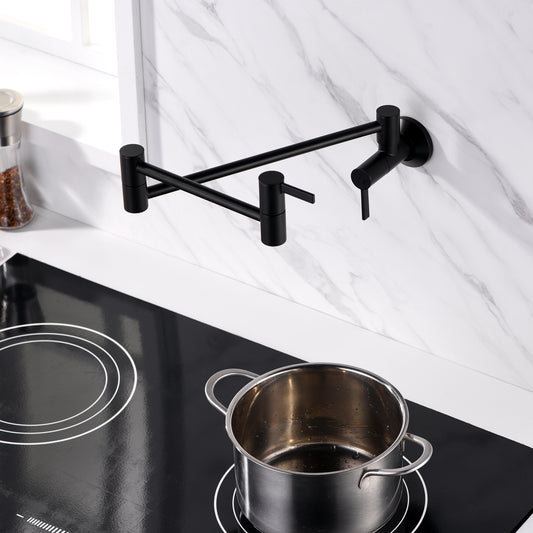 KTS27-TM Contemporary Wall-Mounted Pot Filler with 2 Handles in Matte Black