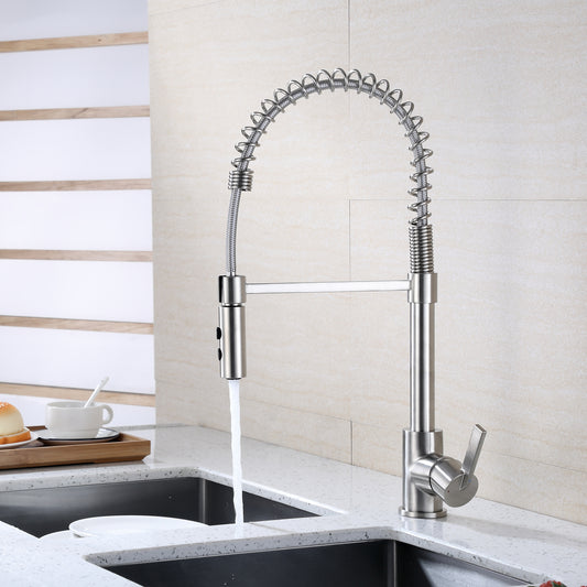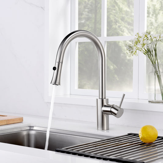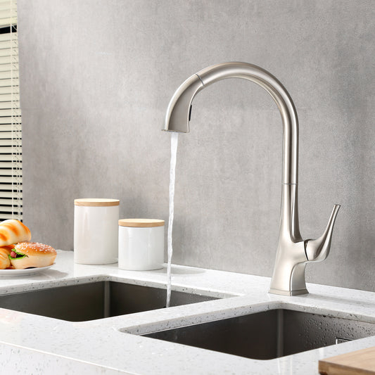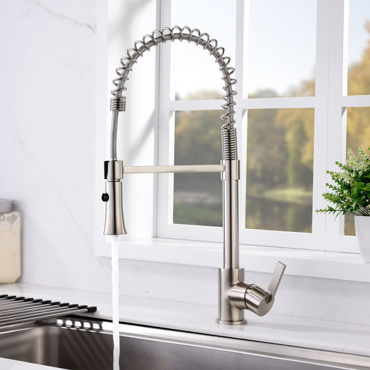 KTS20-TB Single-Handle Pull-Down Sprayer Kitchen Faucet with 2-Function Spray Head 359 in Brushed Nickel
