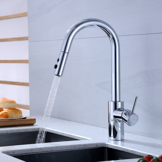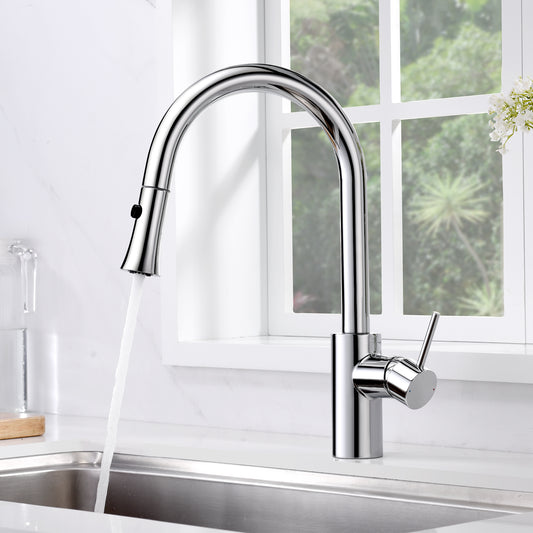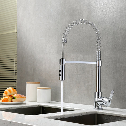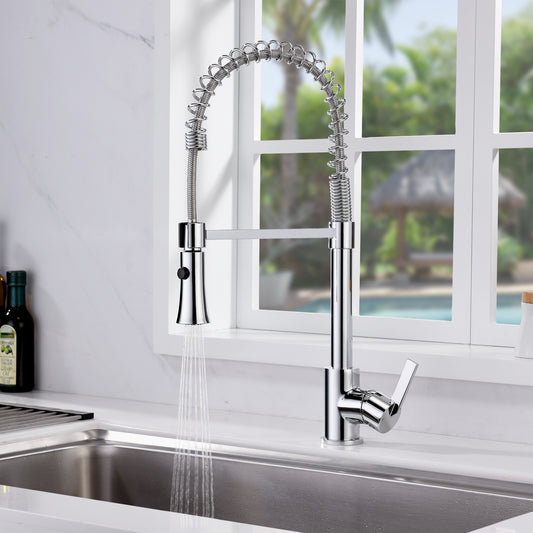 KTS22-TC Single-Handle Pull-Down Sprayer Kitchen Faucet with 2-Function Sprayhead in Chrome