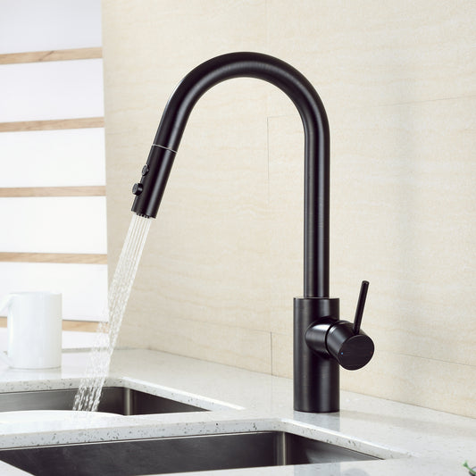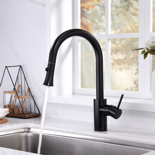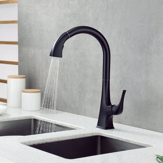 KTS13-TM Single-Handle Pull-Down Sprayer Kitchen Faucet with 2-Function Sprayhead in Matte Black
