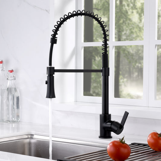KTS22-TM Single-Handle Pull-Down Sprayer Kitchen Faucet with 2-Function Sprayhead in Matte Black