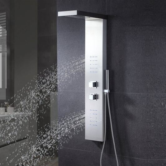 SP20-CEC 48 in. 2-Jet Thermostatic Shower System Panel with Rainfall Waterfall Shower Head Hand Shower in Stainless Steel