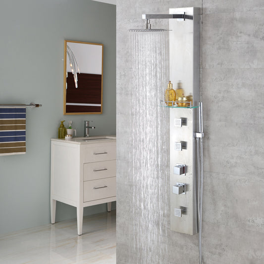 SP21-CEC 55 in. 3-Jet Full Body Thermostatic Shower System Panel with Rainfall Shower Head Hand Shower in Stainless Steel