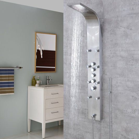SP22-CEC 61 in. 8-Jet Full Body Shower System Panel with Rainfall Waterfall Shower Head Hand Shower in Stainless Steel