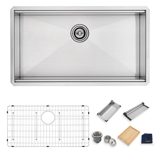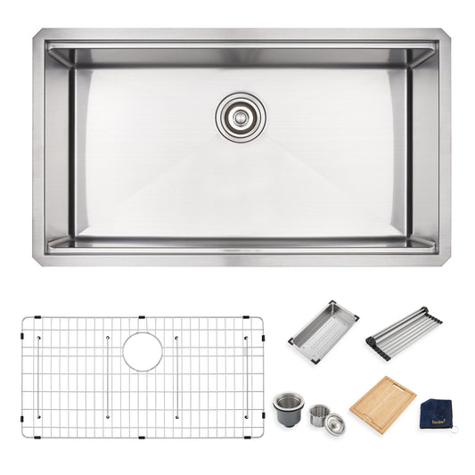 BHS33-18R 33 in. Undermount Single Bowl 18-Gauge Stainless Steel Kitchen Sink with R10 Corner