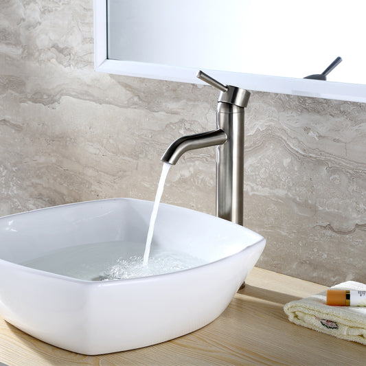 Raphral BSH03-TB Single Hole Single-Handle Vessel Bathroom Faucet with Drain in Brushed Nickel