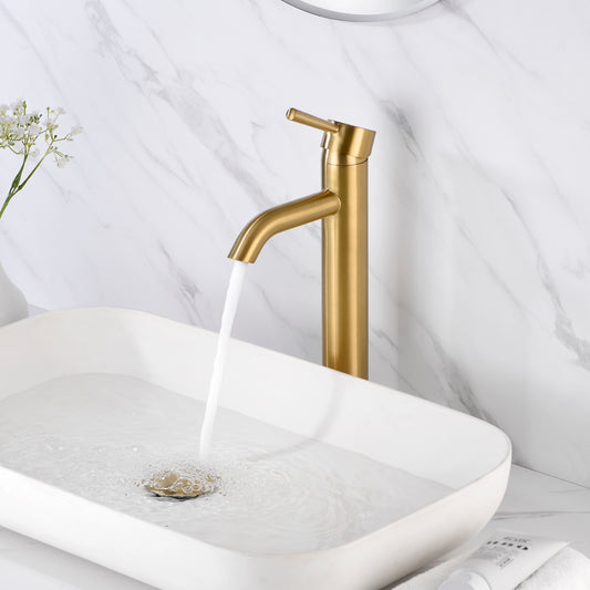 Raphral BSH03-TG Single Hole Single-Handle Vessel Bathroom Faucet with Drain in Brushed Gold