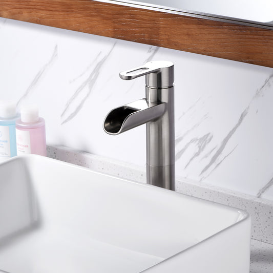 VividFall BSH16-TB Waterfall Single Hole Single Handle Bathroom Vessel Sink Faucet with Drain in Brushed Nickel