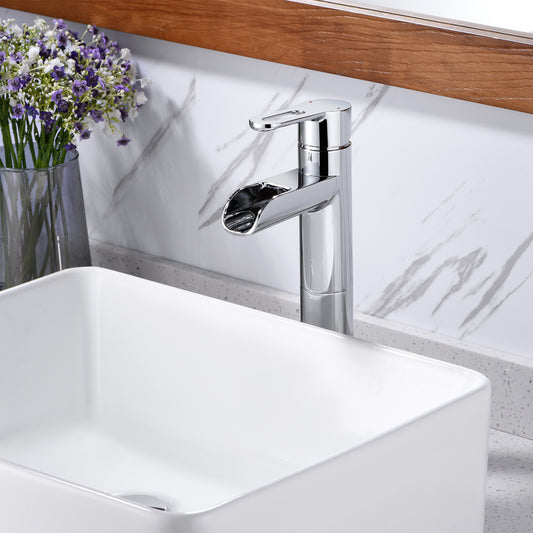 VividFall BSH16-TC Waterfall Single Hole Single Handle Bathroom Vessel Sink Faucet with Drain in Chrome