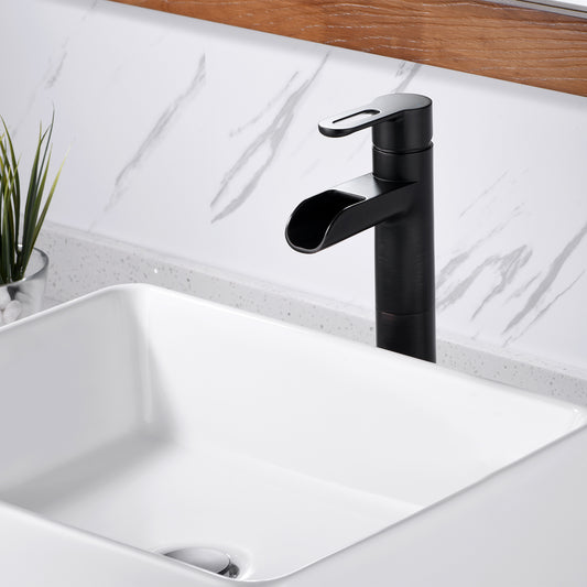 VividFall BSH16-TO Waterfall Single Hole Single Handle Bathroom Vessel Sink Faucet with Drain in Oil Rubbed Bronze