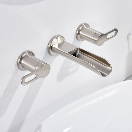 VividFall WMD16-TB 2-Handle Wall Mounted Bathroom Faucet with Valve in Brushed Nickel