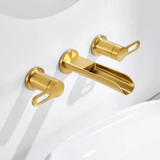 VividFall WMD16-TG 2-Handle Wall Mounted Bathroom Faucet with Valve in Brushed Gold