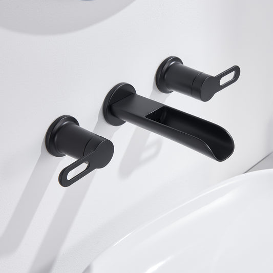 VividFall WMD16-TM 2-Handle Wall Mounted Bathroom Faucet with Valve in Matte Black