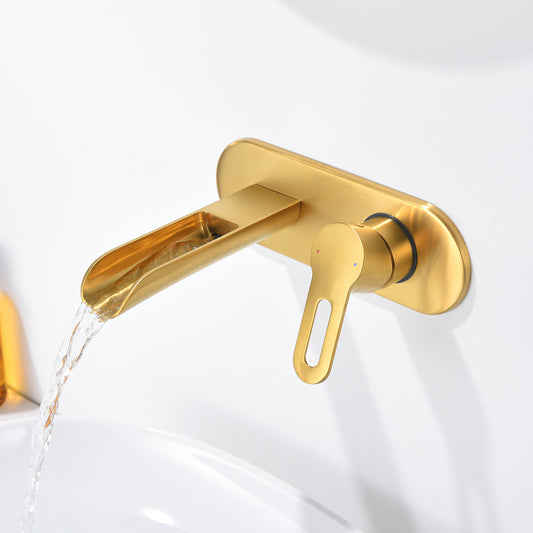 VividFall WMS16-TG 1-Handle Wall Mounted Bathroom Faucet with Valve in Brushed Gold