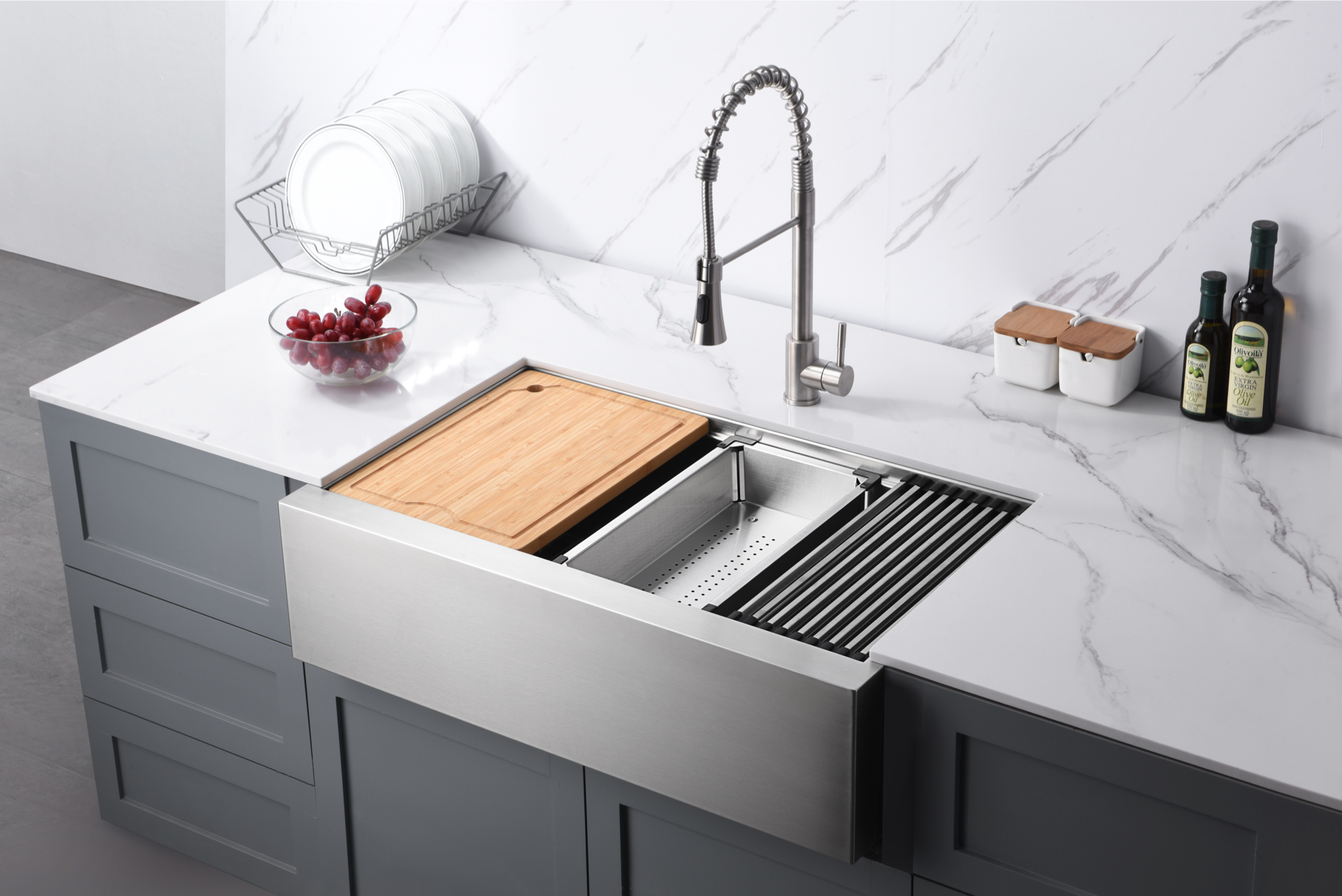 Discover the ultimate in kitchen practicality with our range of sinks, designed for seamless integration into any kitchen design. From robust farmhouse styles to sleek undermount installations, our kitchen sinks are crafted for durability and styled to complement your culinary space perfectly.