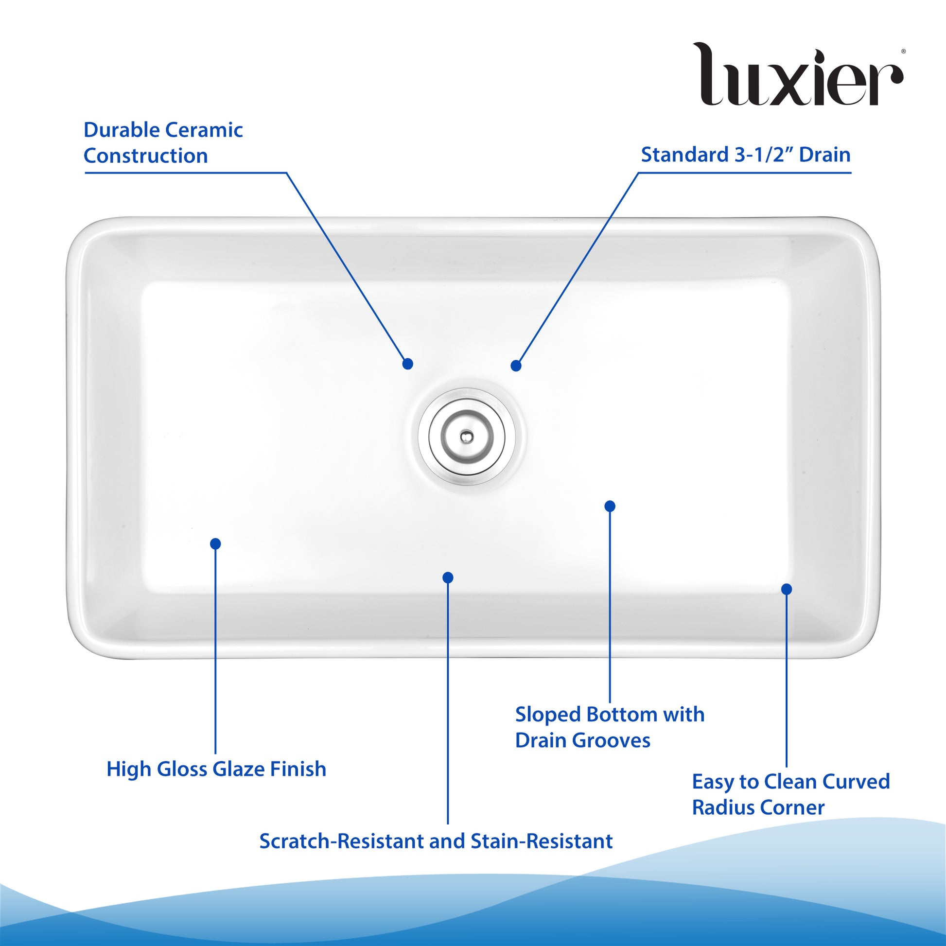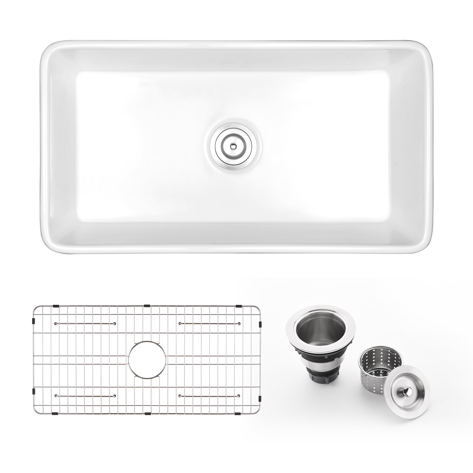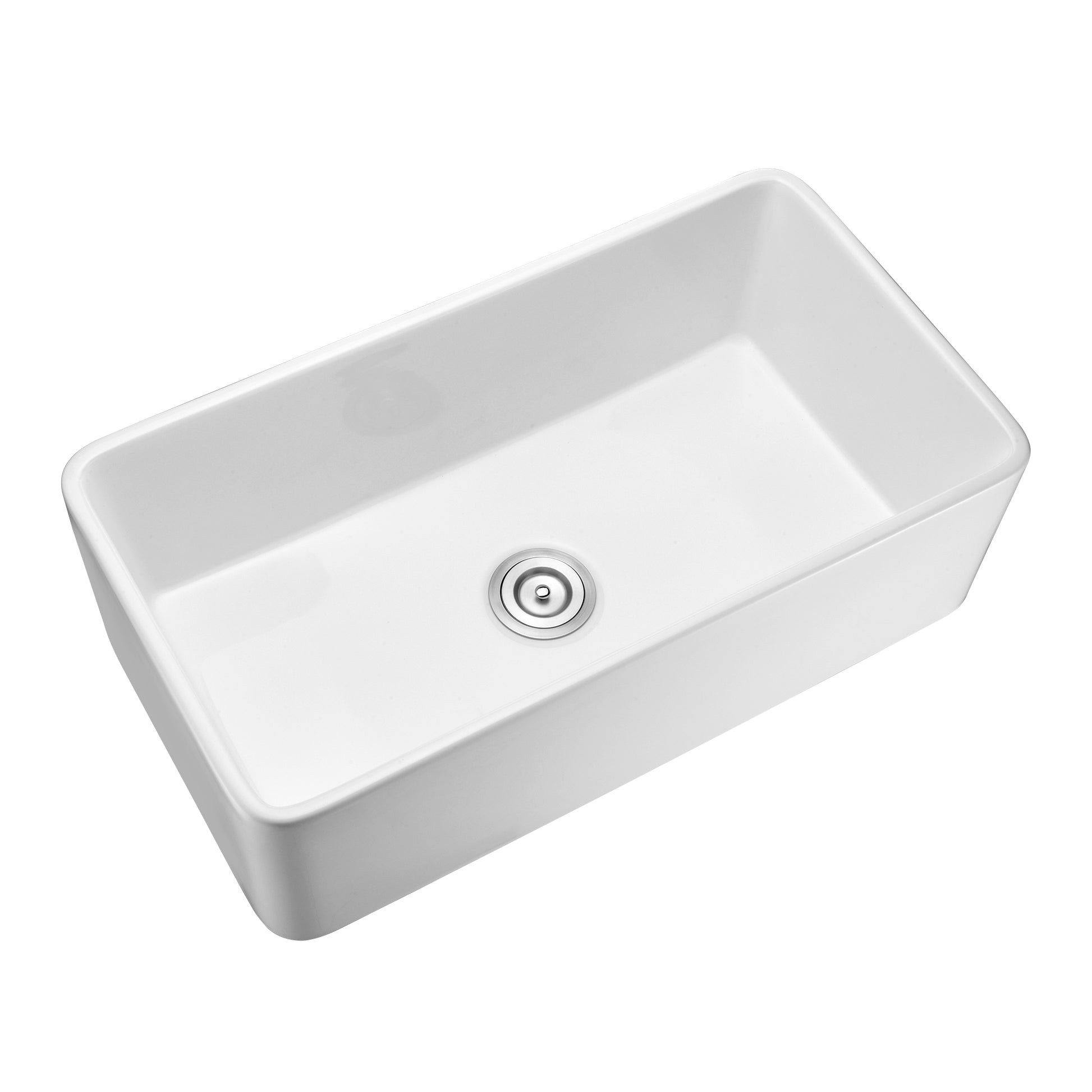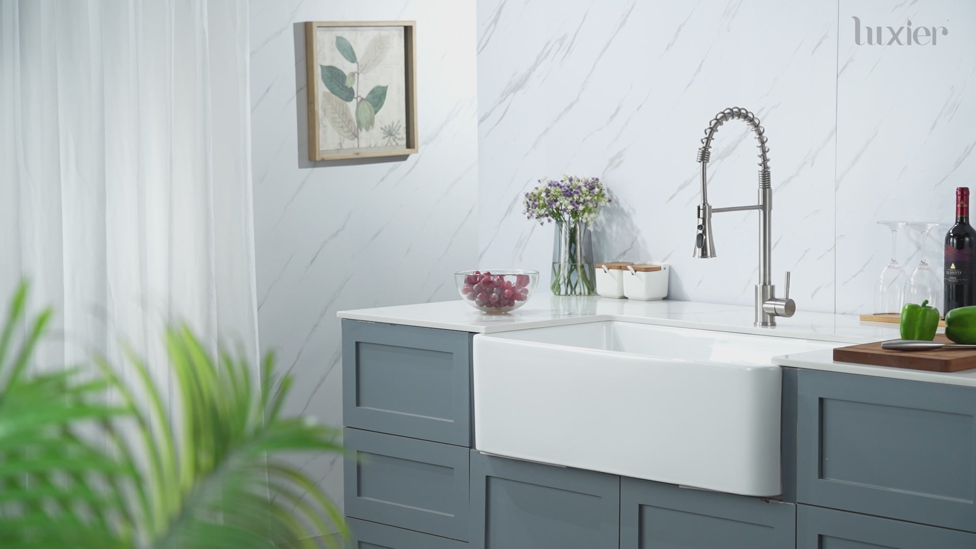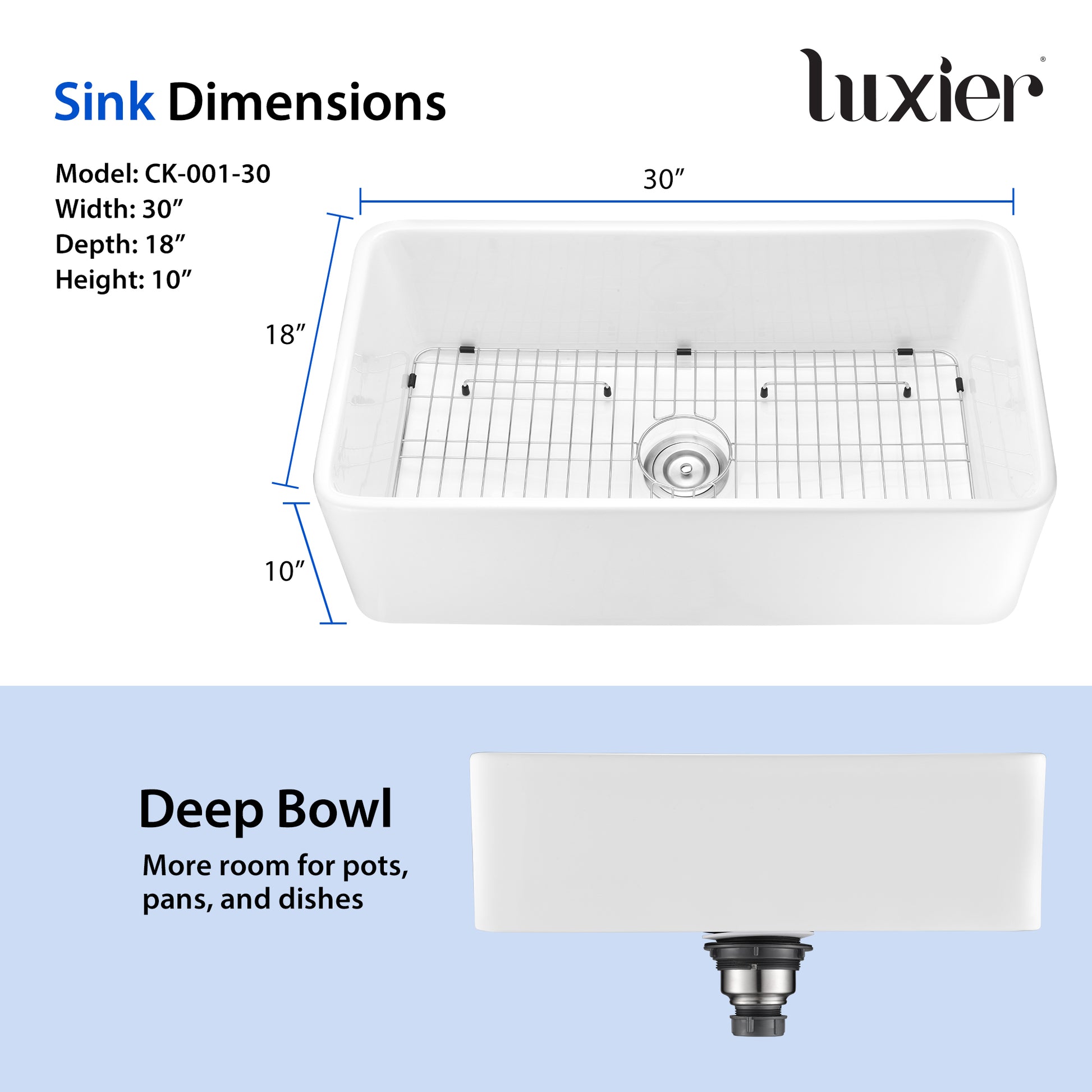 The modern styling of the CK-001 series Farmhouse Sink from LUXIER creates a streamlined look of contemporary elegance. This generously sized kitchen sink is crafted with a large bowl, providing ample space for stacking dishes and accommodating stockpots, meeting your requirements for additional usable space. Constructed from high-quality ceramic, its appealing and sleek glaze ensures easy cleaning. The combination of beauty and durability is evident in its scratch- and stain-resistant surface. With classic simplicity and clean contemporary lines, it enhances the aesthetic of both traditional and modern kitchens. You can buy with confidence, knowing that LUXIER backs its products with a limited 2-year warranty.