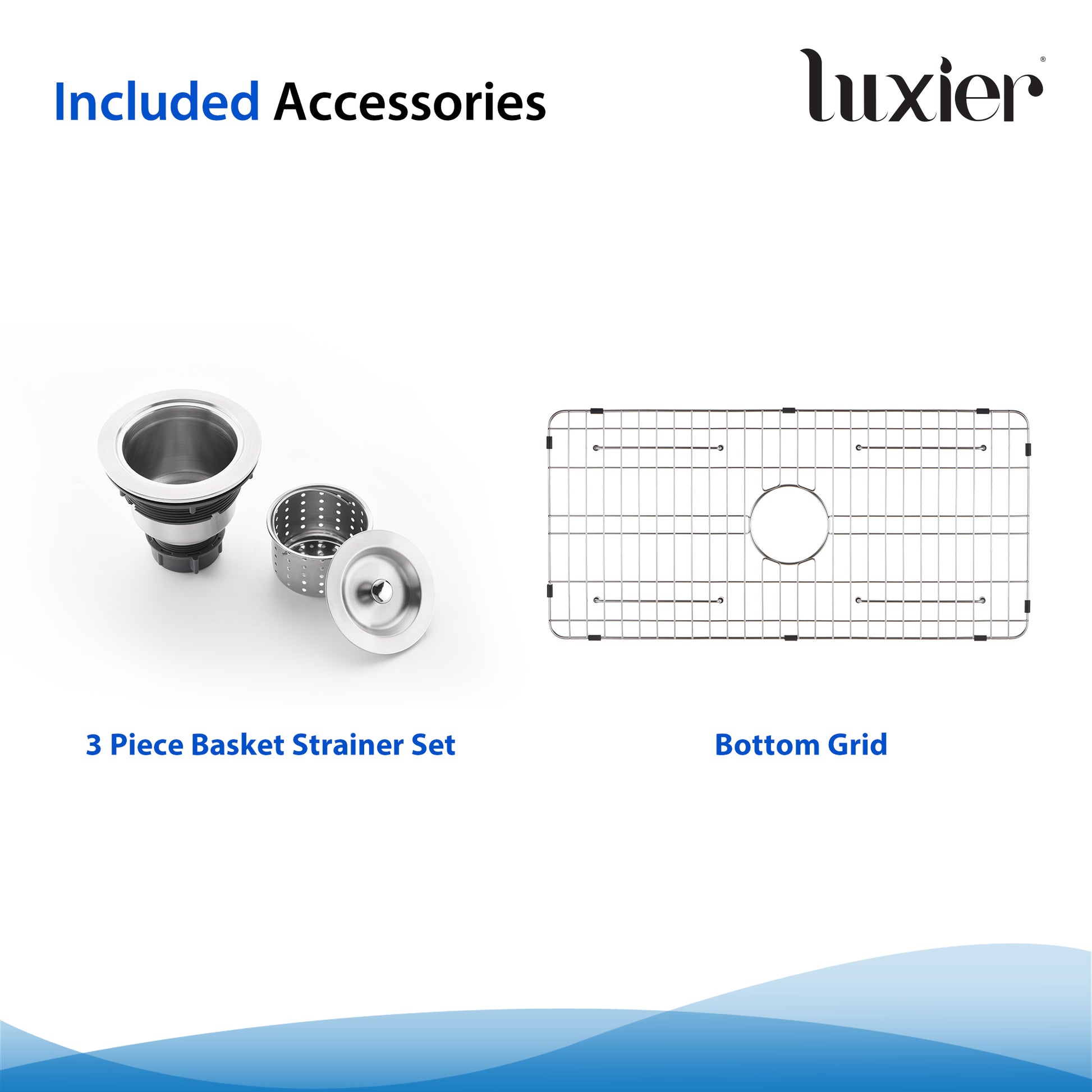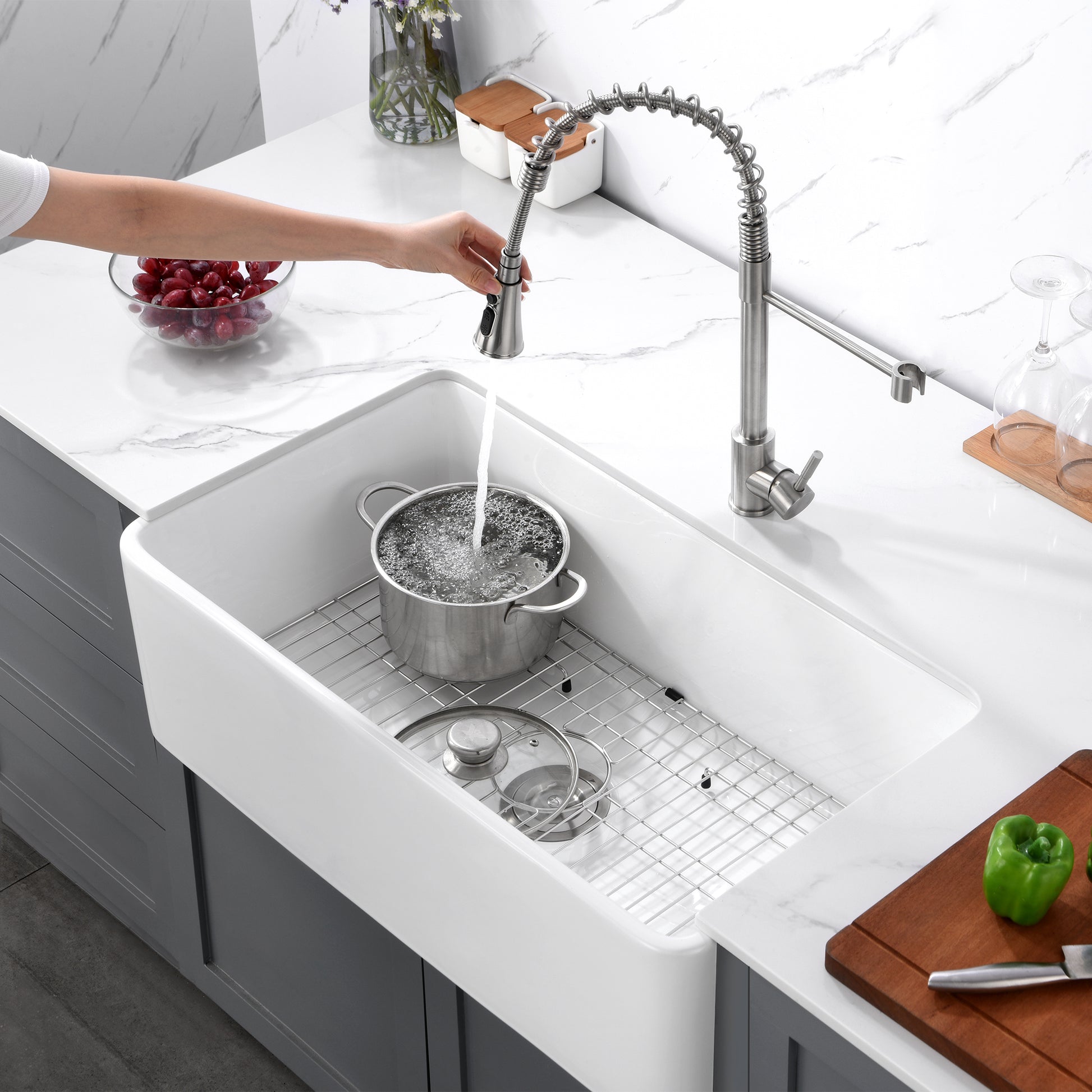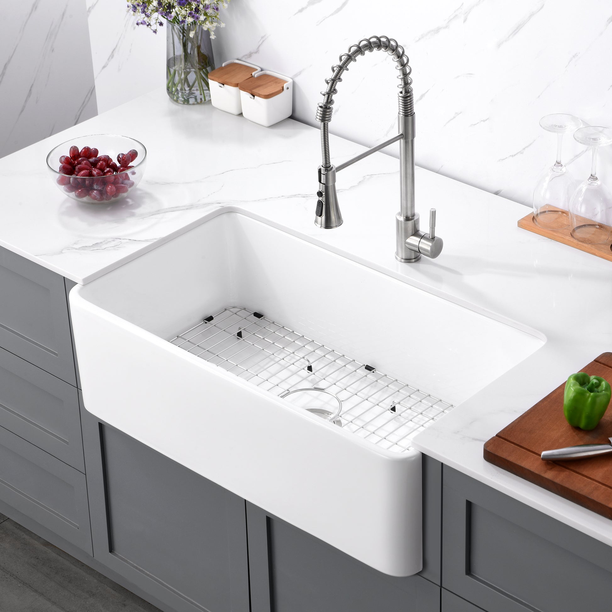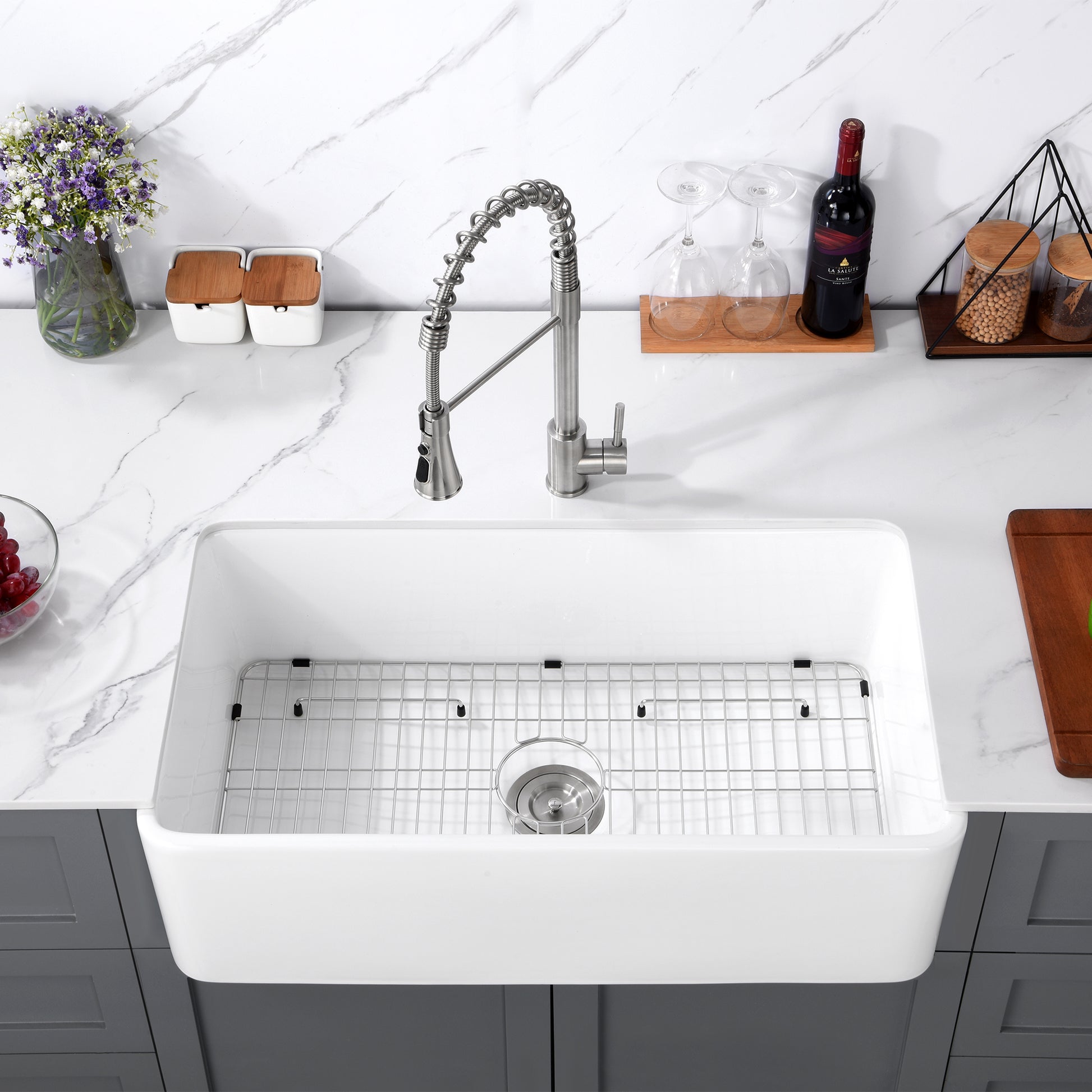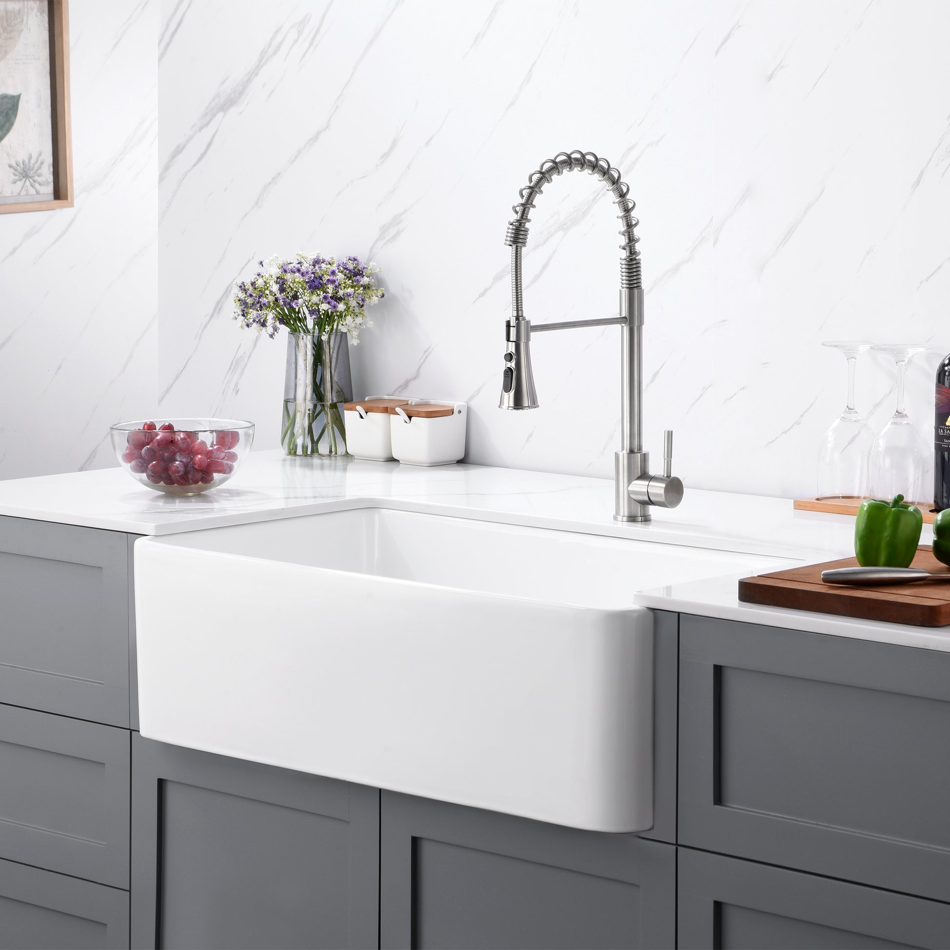 The modern styling of the CK-001 series Farmhouse Sink from LUXIER creates a streamlined look of contemporary elegance. This generously sized kitchen sink is crafted with a large bowl, providing ample space for stacking dishes and accommodating stockpots, meeting your requirements for additional usable space. Constructed from high-quality ceramic, its appealing and sleek glaze ensures easy cleaning. The combination of beauty and durability is evident in its scratch- and stain-resistant surface. With classic simplicity and clean contemporary lines, it enhances the aesthetic of both traditional and modern kitchens. You can buy with confidence, knowing that LUXIER backs its products with a limited 2-year warranty.
