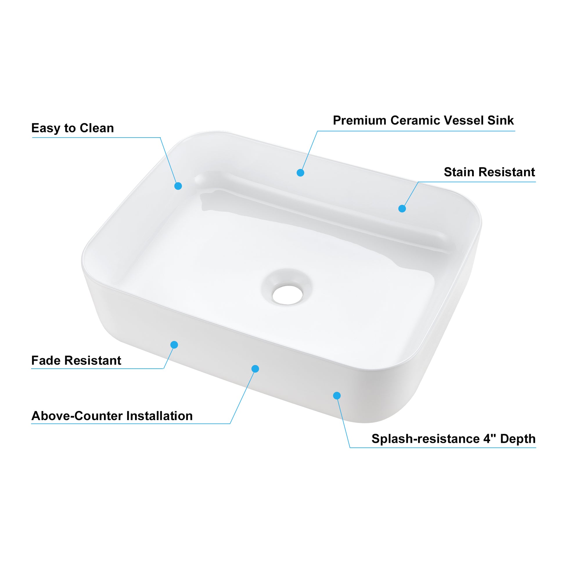 CS-034-GW Rectangular 20-1/4 in. Bathroom Ceramic Vessel Sink Art Basin in Glossy White