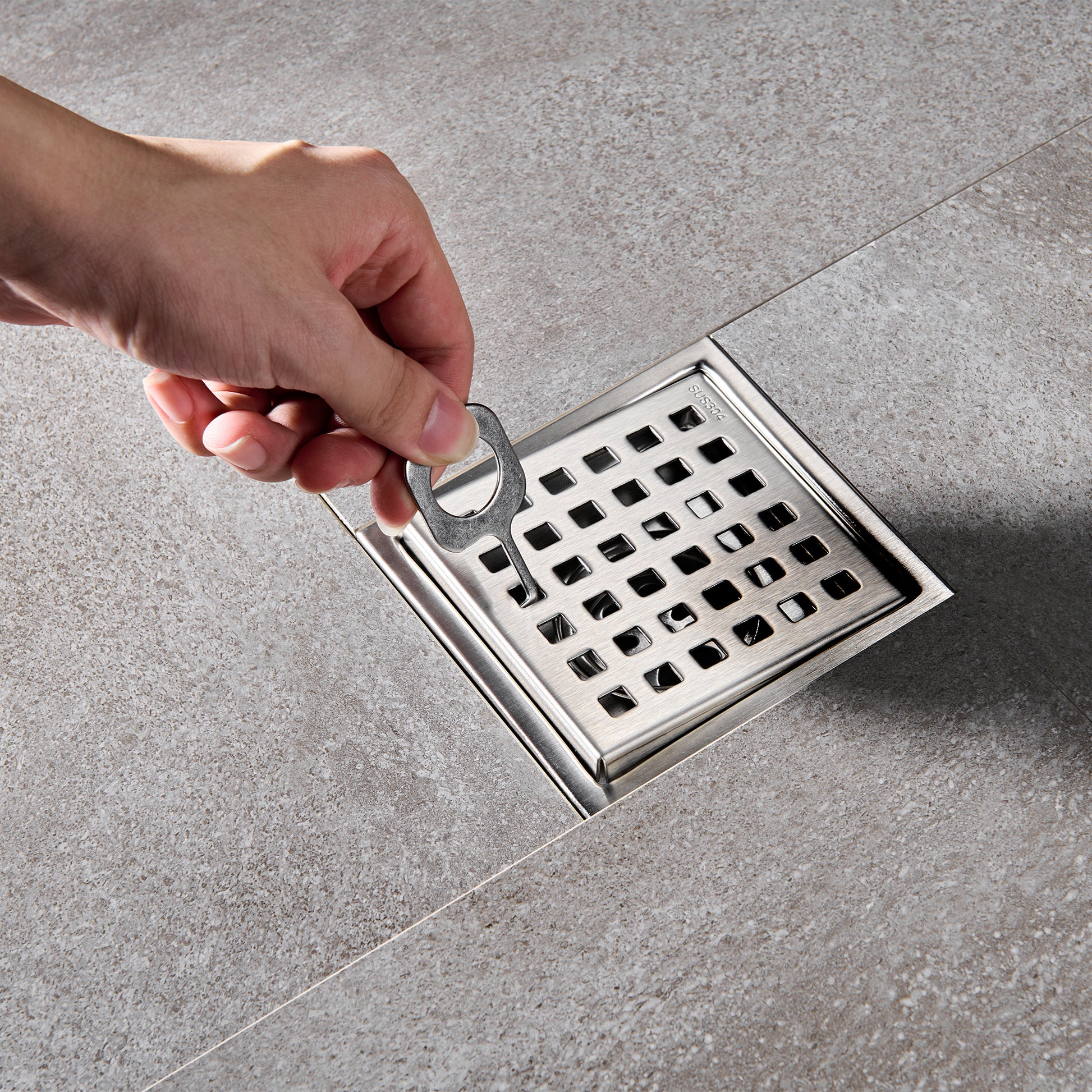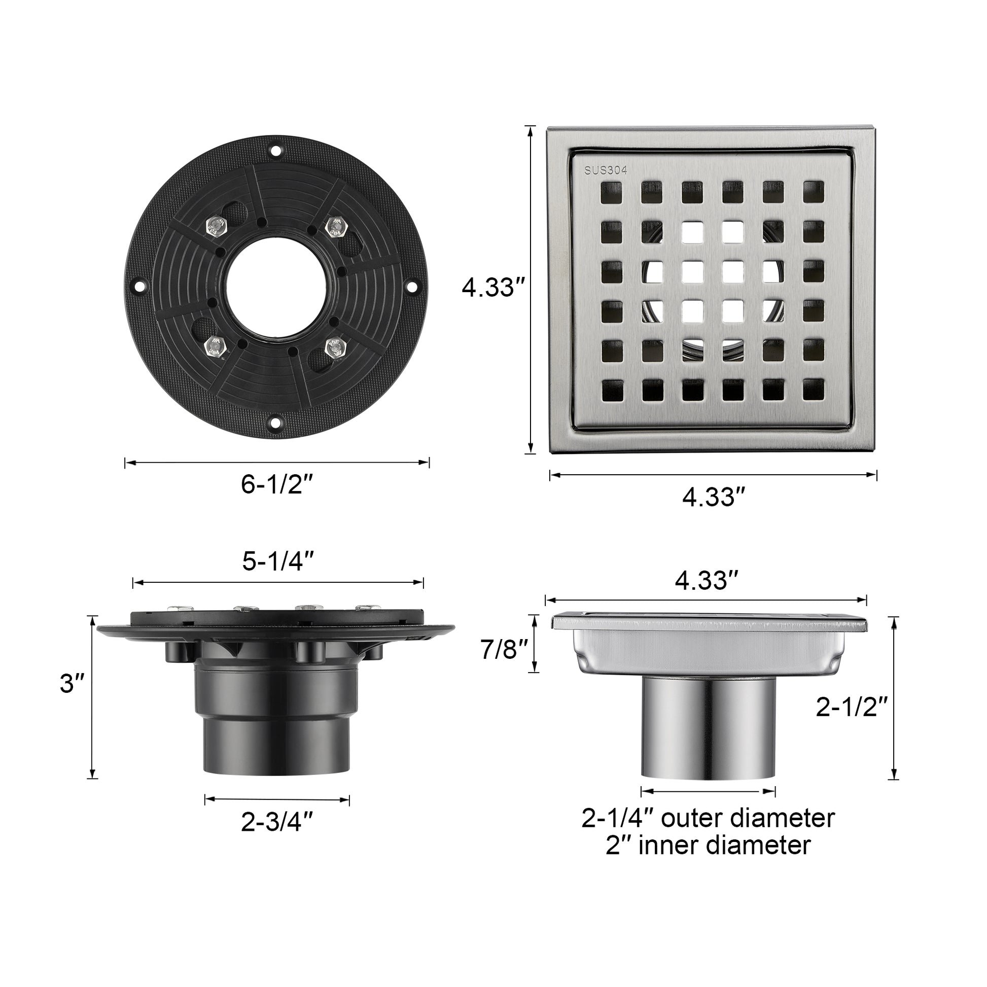 The FD01-4 square floor drain from LUXIER incorporates a contemporary and sleek design, adding a touch of modernity to any space. It is offered in Stainless Steel, Brushed Gold, Matte Black, and Oil Rubbed Bronze finishes, providing options that complement various bathroom styles. Constructed with stainless steel, this 4 in. x 4 in. floor drain ensures durability and extended functionality. With LUXIER's 2-year warranty, you can make your purchase with assurance and peace of mind.