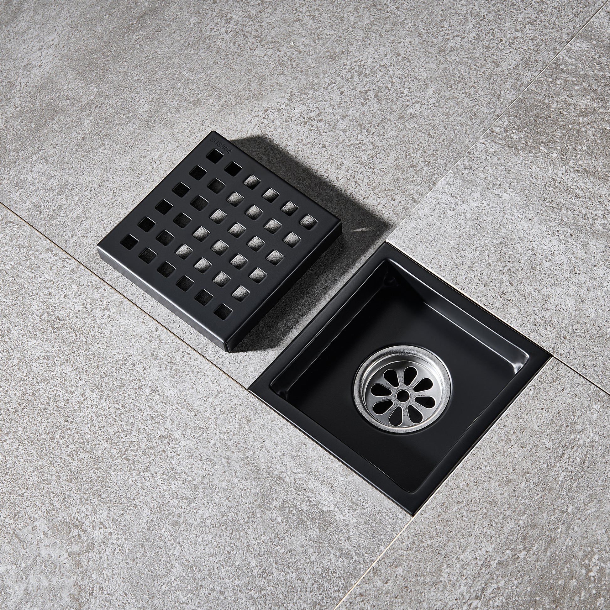 FD01-4-TM 4 in. x 4 in. Stainless Steel Square Shower Floor Drain in Matte Black