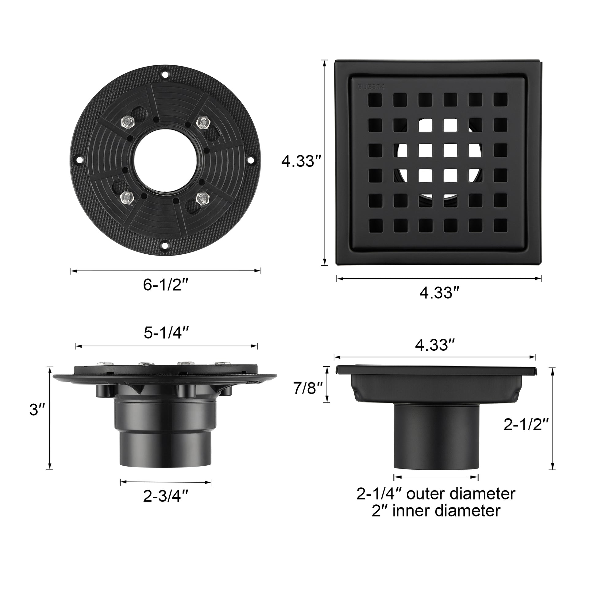 The FD01-4 square floor drain from LUXIER incorporates a contemporary and sleek design, adding a touch of modernity to any space. It is offered in Stainless Steel, Brushed Gold, Matte Black, and Oil Rubbed Bronze finishes, providing options that complement various bathroom styles. Constructed with stainless steel, this 4 in. x 4 in. floor drain ensures durability and extended functionality. With LUXIER's 2-year warranty, you can make your purchase with assurance and peace of mind.