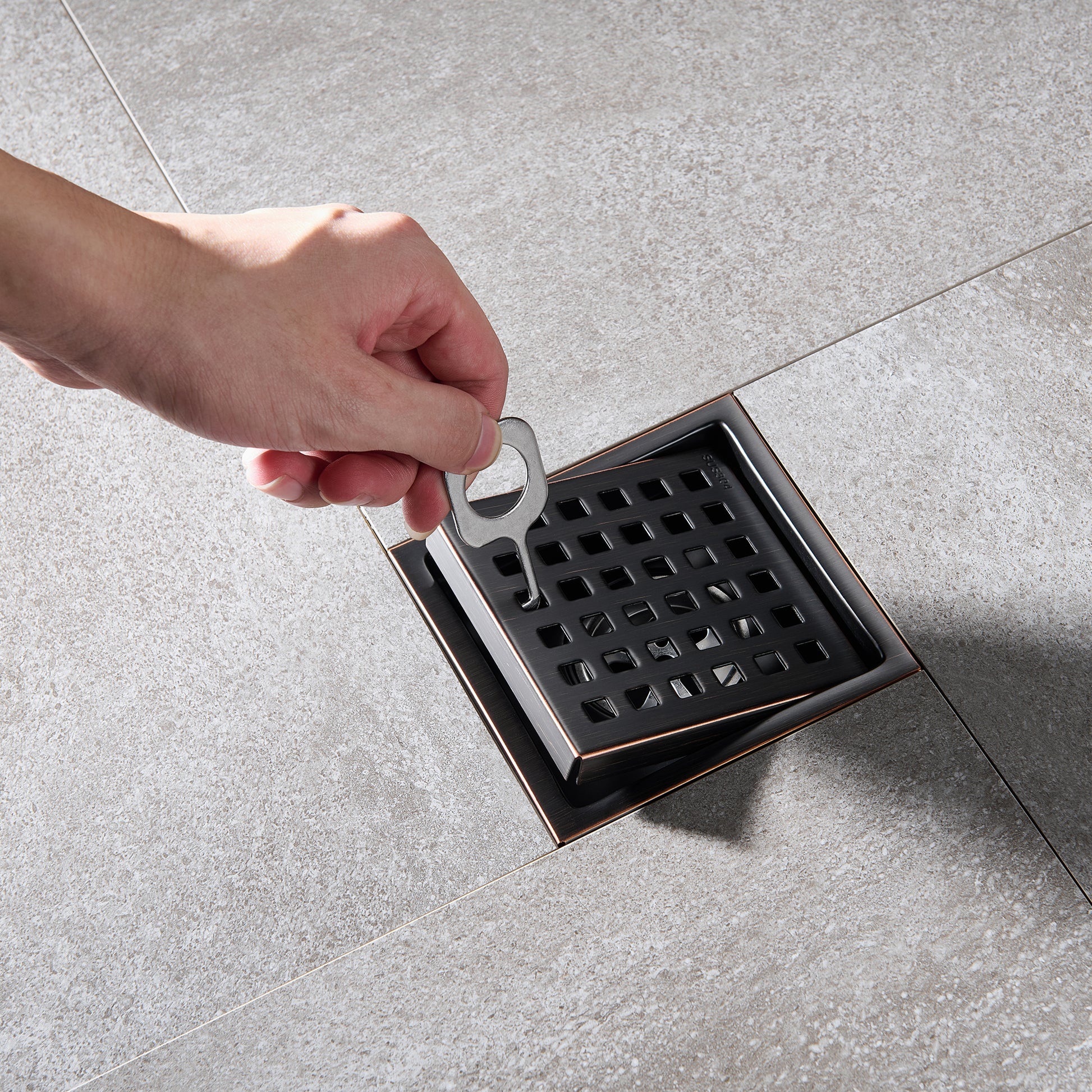FD01-4-TO 4 in. x 4 in. Stainless Steel Square Shower Floor Drain in Oil Rubbed Bronze