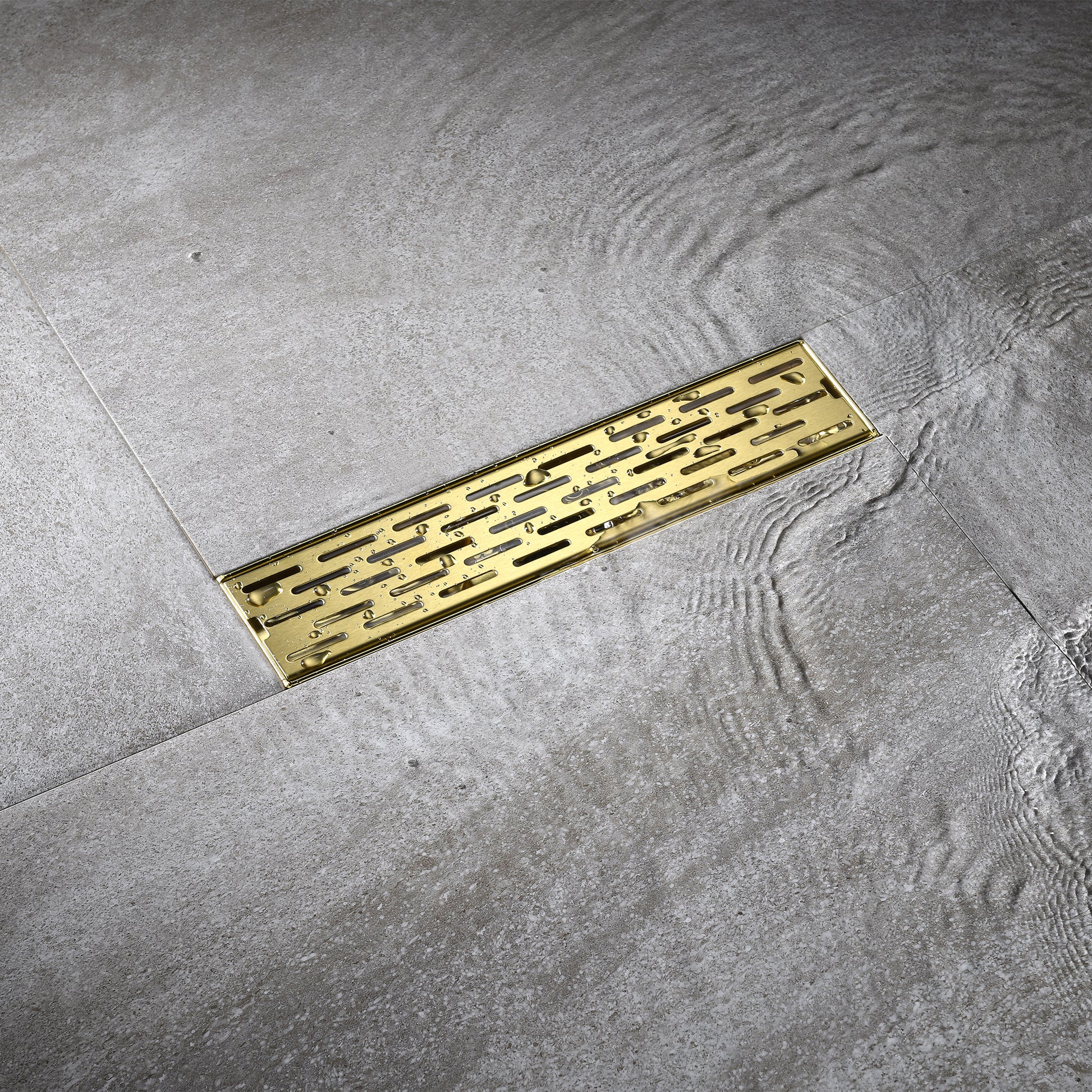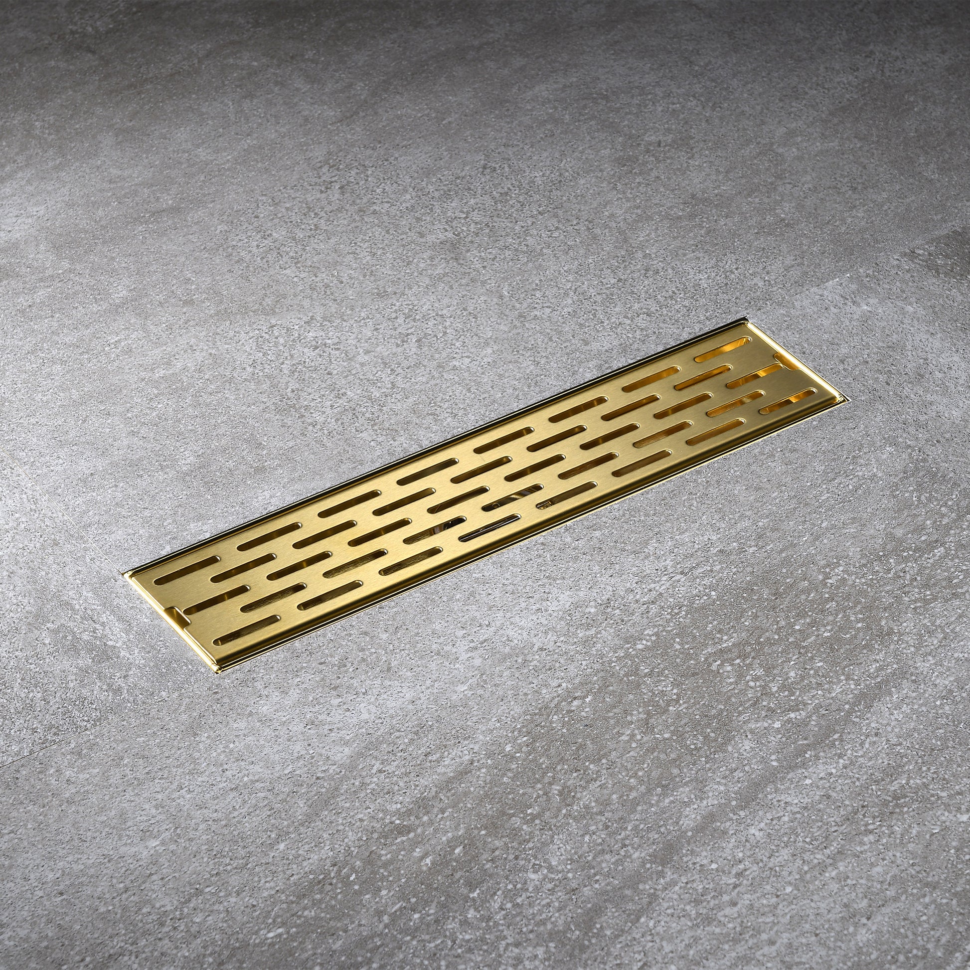 FD02-12-TG 12 in. Stainless Steel Linear Shower Drain with Square Pattern Drain Cover in Brushed Gold