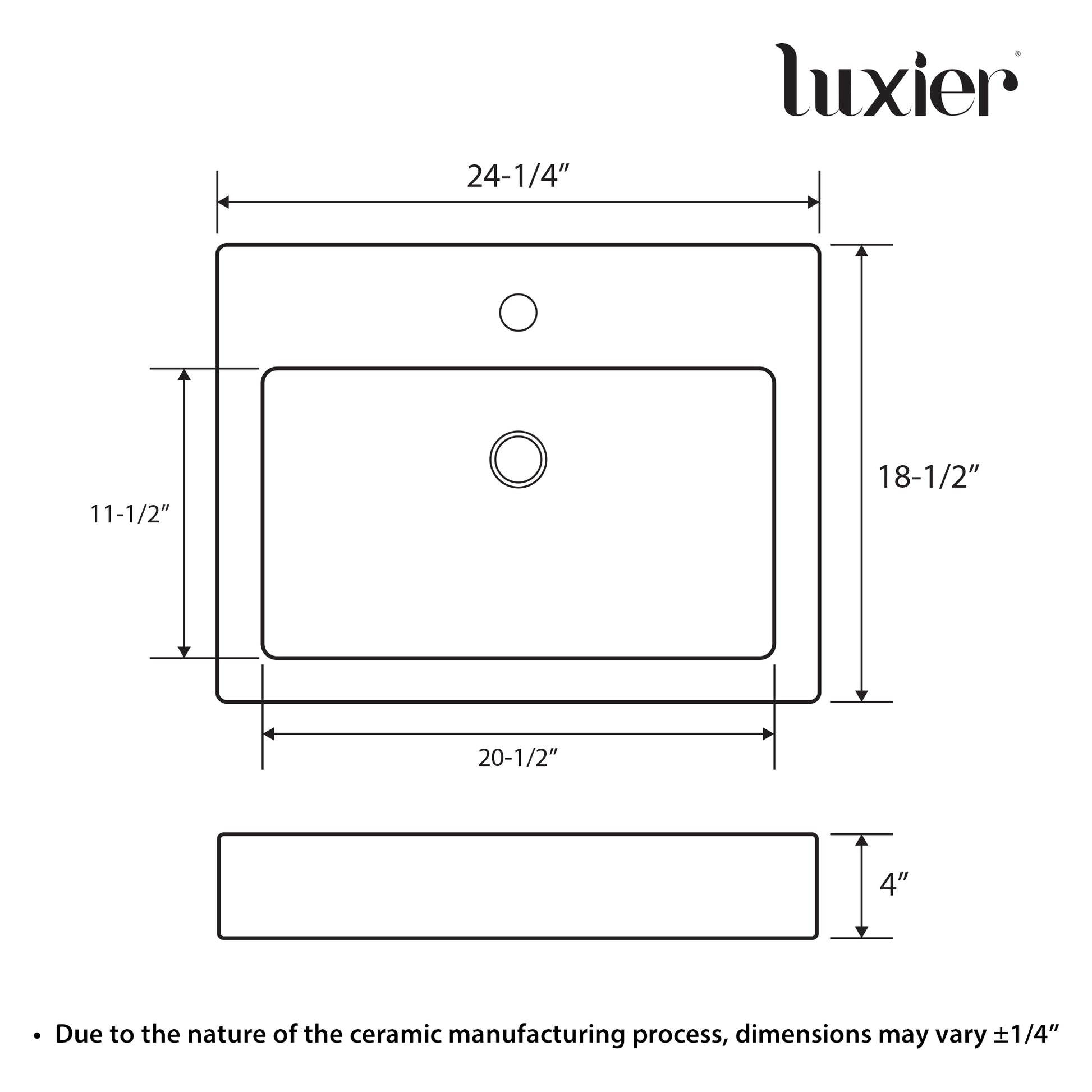 • 24 1/4 in. W x 18-1/2 in. D x 4 in. H