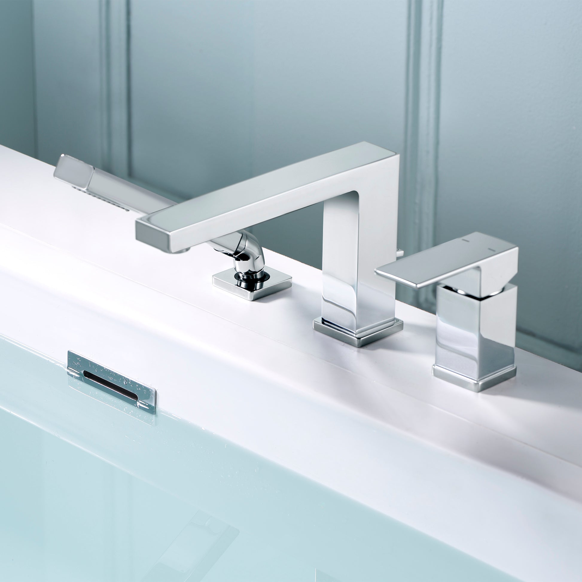 The modern styling of the RTF17-T series Single-Handle Roman Tub Faucet from LUXIER creates a streamlined look of contemporary elegance. Available in Brushed Nickel, Chrome, Matte Black, and Oil Rubbed Bronze, this faucet complements a variety of bathroom settings. The faucet's smooth 1-handle operation makes for easy temperature control. It also includes the hand shower with an extended hose for full-body cleaning. You can buy with confidence, knowing that LUXIER backs its products with a limited lifetime warranty.