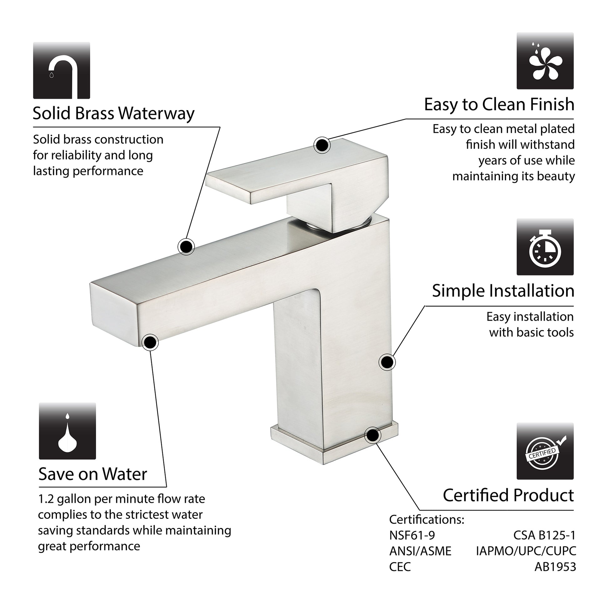 The modern styling of the BSH05-S series Single-Handle Bathroom Faucet from LUXIER creates a streamlined look of contemporary elegance. Available in Brushed Nickel, Chrome, Matte Black, and Oil Rubbed Bronze, this faucet complements a variety of bathroom settings. The faucet's smooth single-handle operation makes for easy temperature control. It also includes the innovative Push Pop-Up drain for ease of use. You can buy with confidence, knowing that LUXIER backs its products with a limited lifetime warranty.